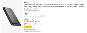 Backup electricity should be for your needs (power you need + space willing to take up + weight you are willing to hold in a backpack). USBC can deliver up to 100 watts of power – enough to charge your laptop if needed.