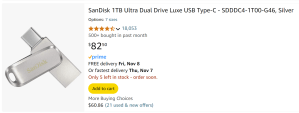 Price of storage continues to decline. 1TB USBC flashdrive. Helpful to store important docs like health records, identification of citizenships, photocopies of documents. Flashdrive should be password protected and encrypted – not necessarily to hide your data – but to protect it in case you lose your flashdrive.